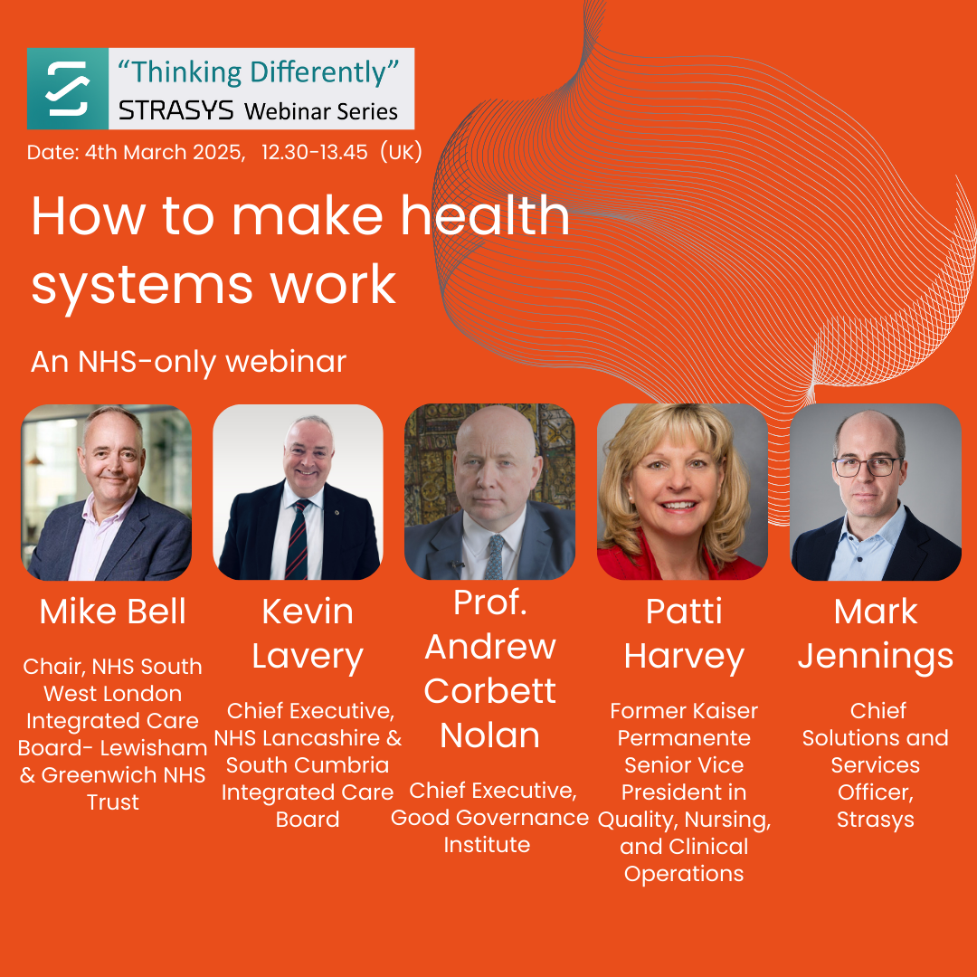 Strasys’ “Thinking Differently” latest webinar “How to make health systems work”, leading healthcare experts discussed the urgent need for transformative change within the NHS, emphasising the importance of thinking outside institutional boundaries to create healthier, integrated systems.