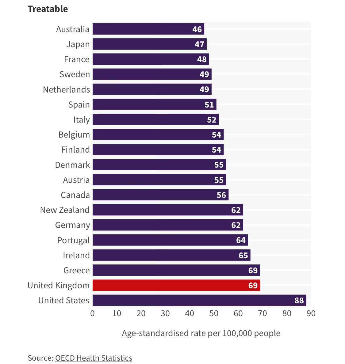 UK has higher Avoidable mortality rates than its peers.